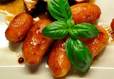 Til andeconfiten serverte jeg rødkål, ovnsbakte gullerøtter og rødløk, sukkerglassert mandelpotet og selvsagt waldorfsalat som alltid smaker godt til fugleretter.